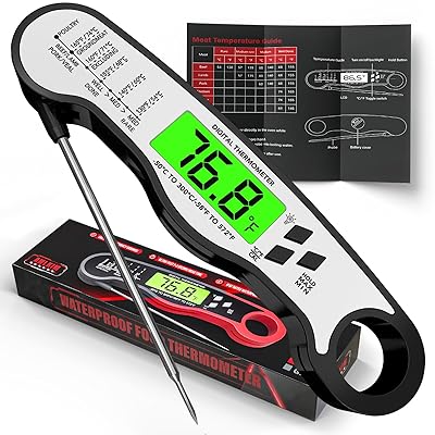 Fast Instant Read Meat Thermometer with Backlight - Waterproof Digital Food Probe for Grilling, Cooking, Baking & Candy Making - Kitchen & BBQ EssentialBlack