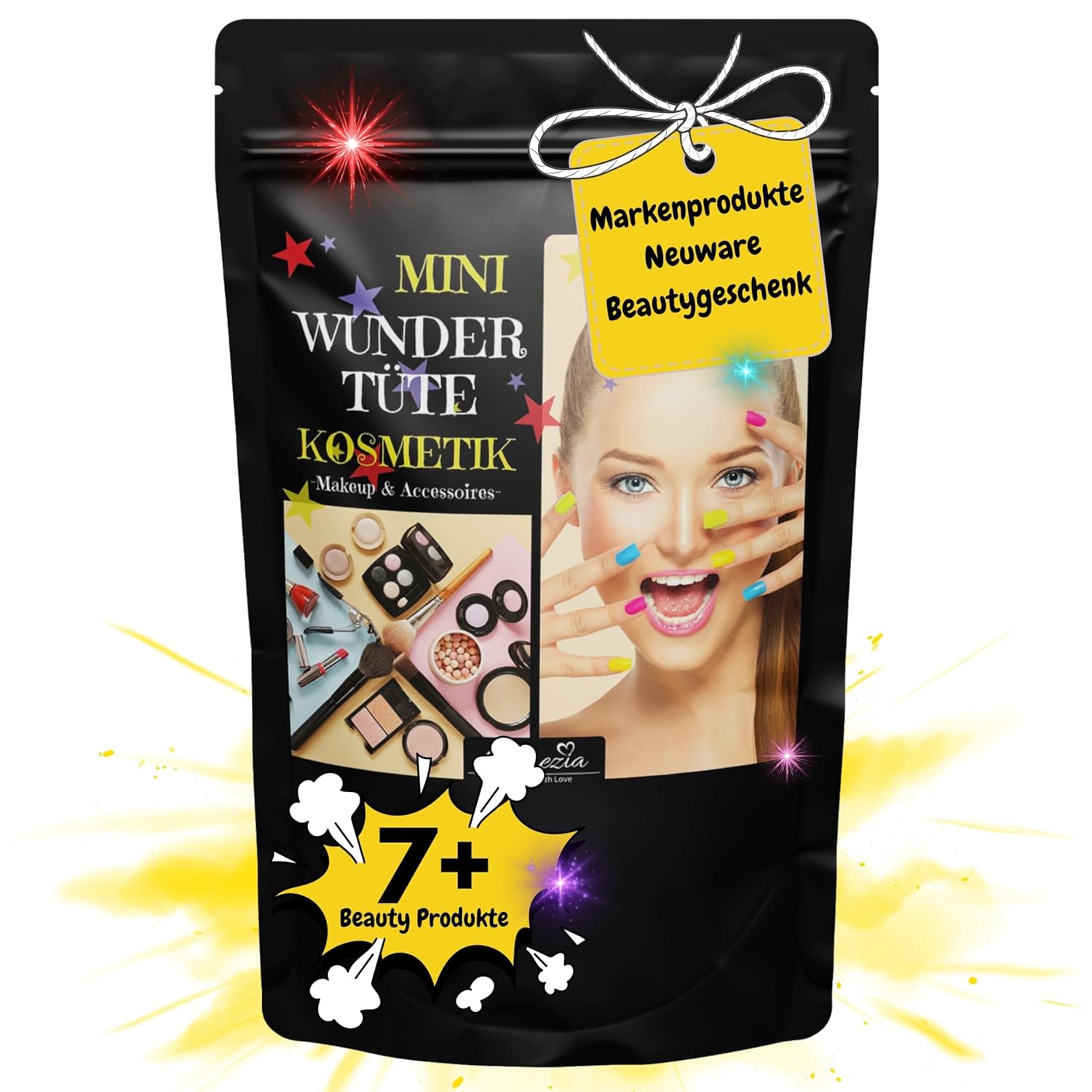 cosmezia make up set wonder bag 7 cosmetics accessories & saying card cosmetic surprise bag makeup brand products beauty surprise products brand make-up gift idea makeup set